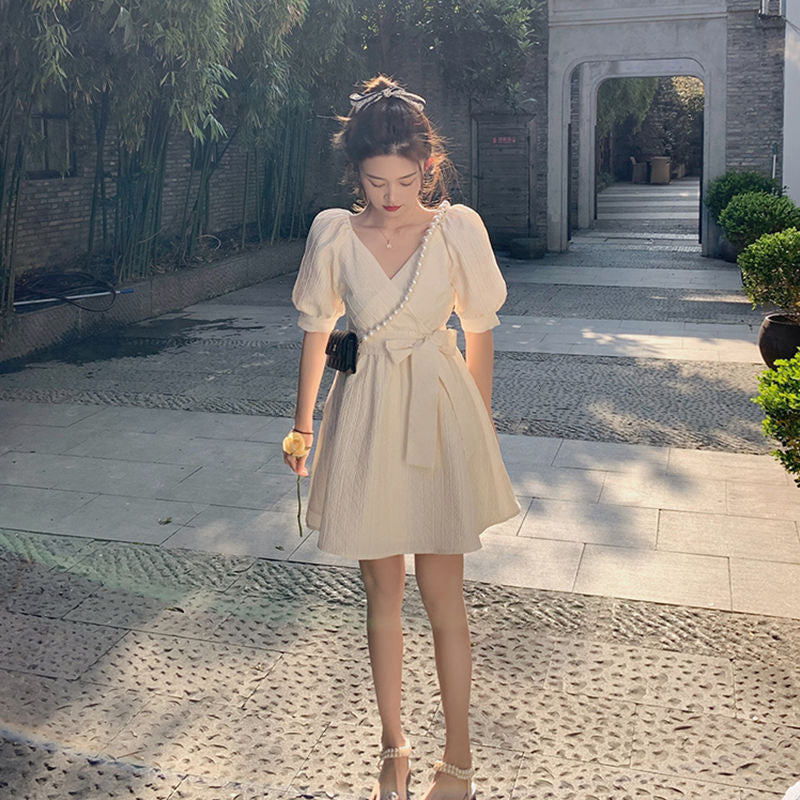 Adoptez un style frais et élégant avec notre robe coréenne à manches bouffantes. Confectionnée en fibres de polyester, cette robe à la coupe A et au col en V est parfaite pour les beaux jours. Ses manches puff ajoutent une touche de féminité et de légèreté à votre tenue 🌸