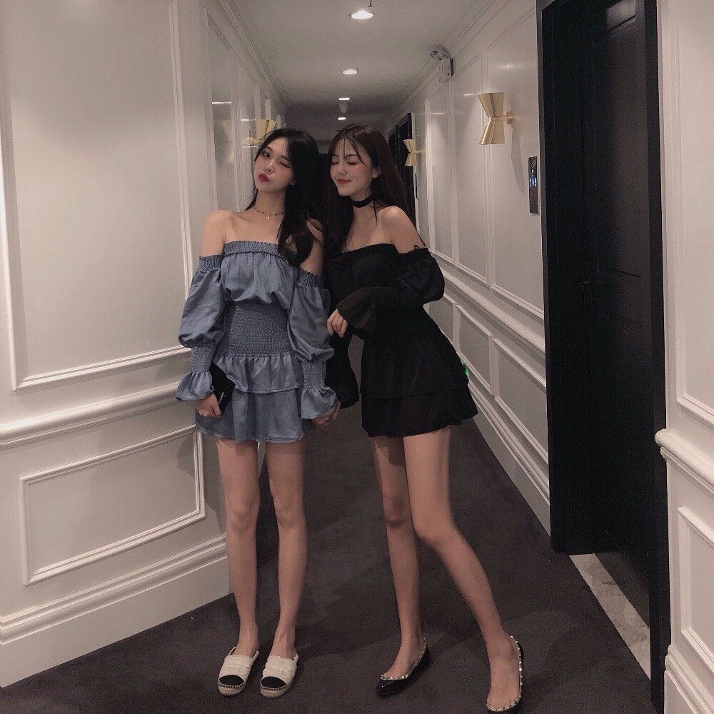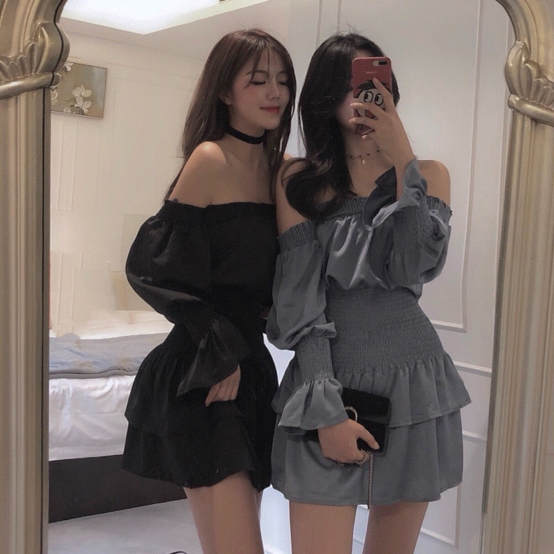 Cette robe élégante est très connue en Corée du Sud grâce à son magnifique col bateau. Elle offre un look élégant et sexy, idéal pour aller en soirée ou sortir entre amies.