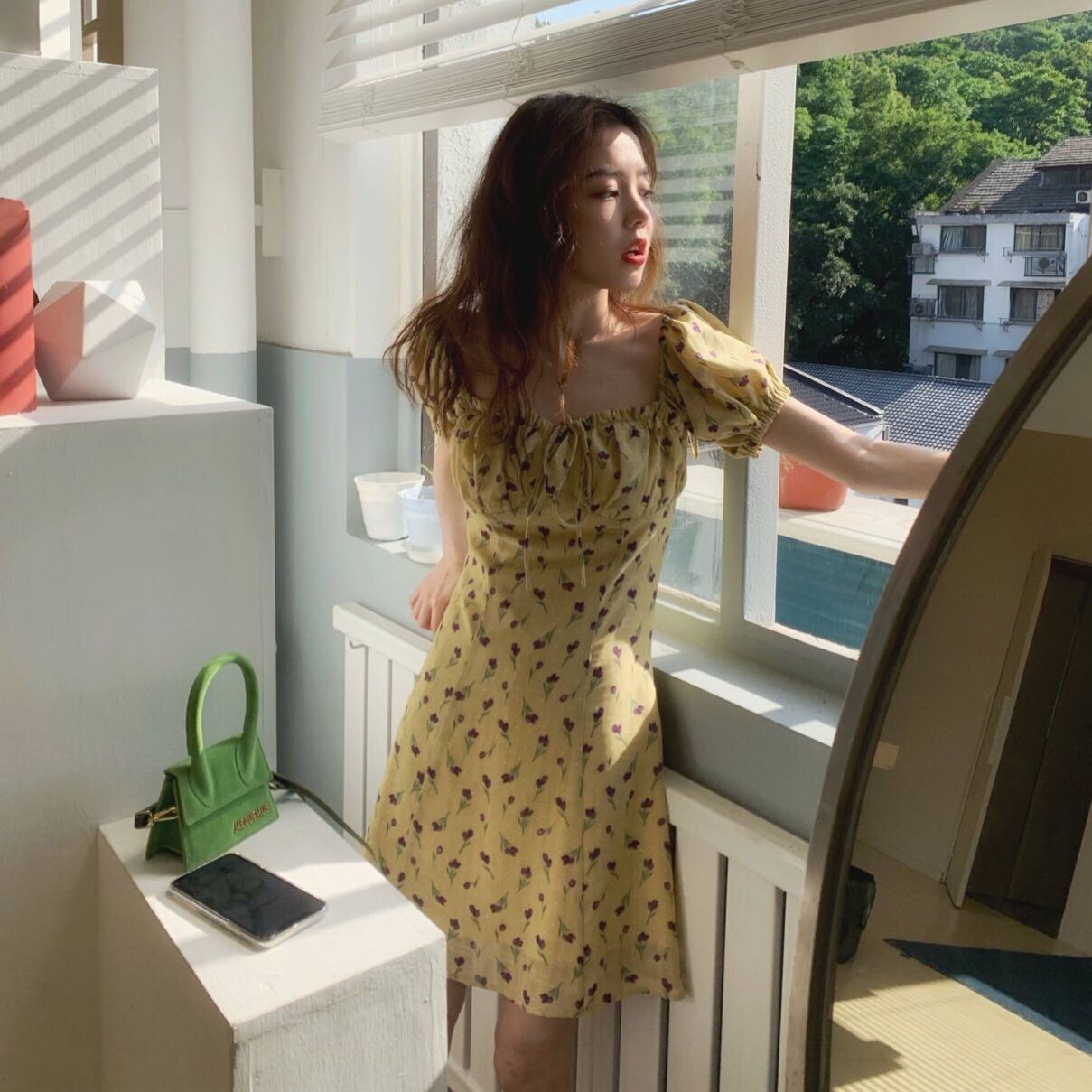 Vous aimez les robes d'été ? Vous souhaitez porter un motif fleuri ? Vous appréciez la couleur jaune car elle est à la mode en Corée ? Découvrez notre robe coréenne fleurie de couleur jaune.
