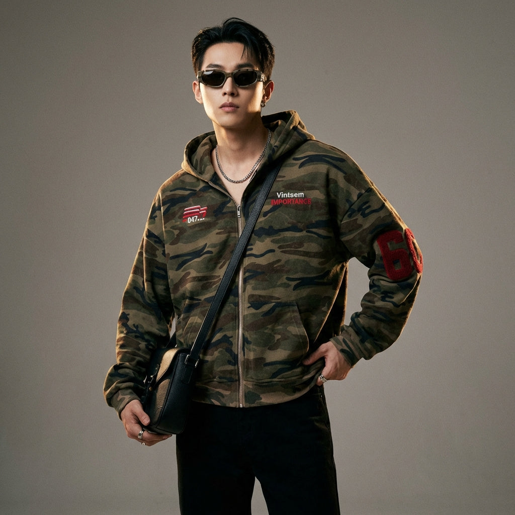 Affirmez votre style urbain avec ce sweat à capuche camouflage, parfait pour une allure décontractée et tendance. Son design oversize et sa broderie subtile en font une pièce forte pour toutes les saisons ! 💥