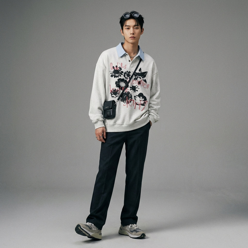 Adoptez un look décontracté et tendance avec notre sweatshirt à col rabattu, imprimé de lettres et de motifs floraux. Son design "faux deux-pièces" offre un style unique et polyvalent, parfait pour un confort au quotidien ! ✨