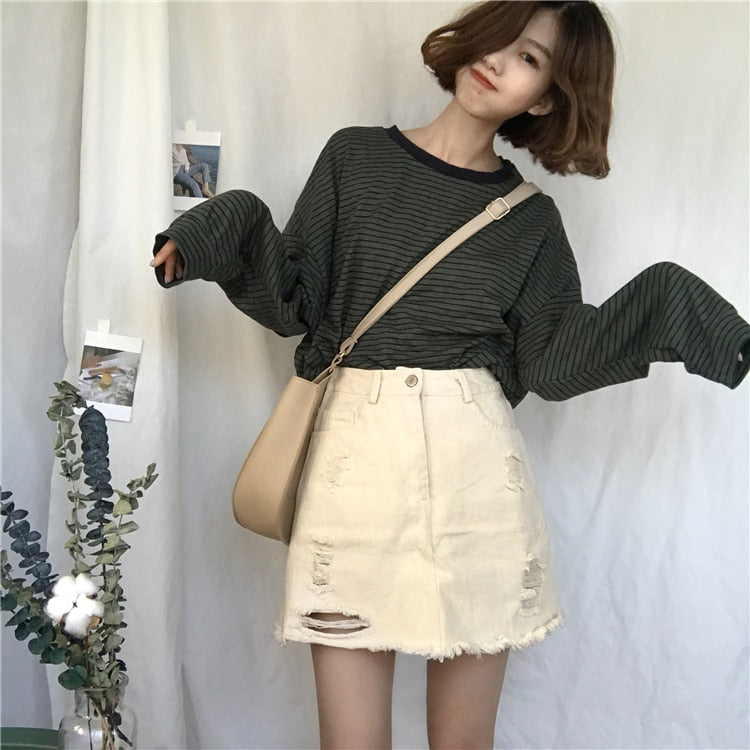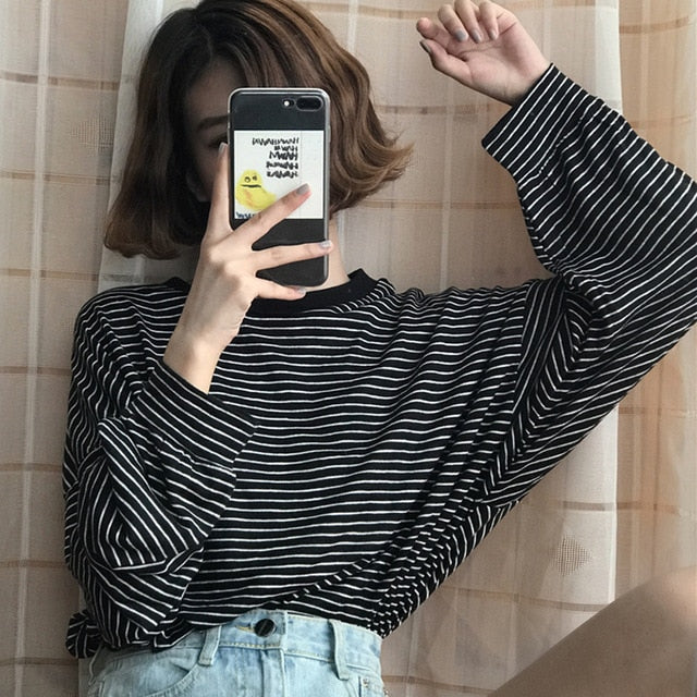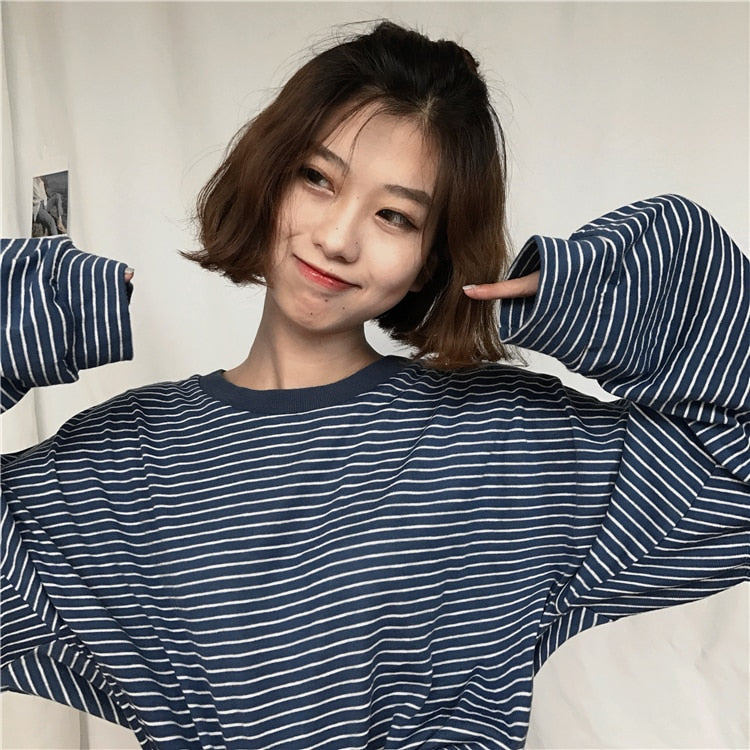 Le T-Shirt à rayures fines est très souvent porté en Corée du sud ! C'est un vêtement commun que l'on peut croiser partout à Séoul.