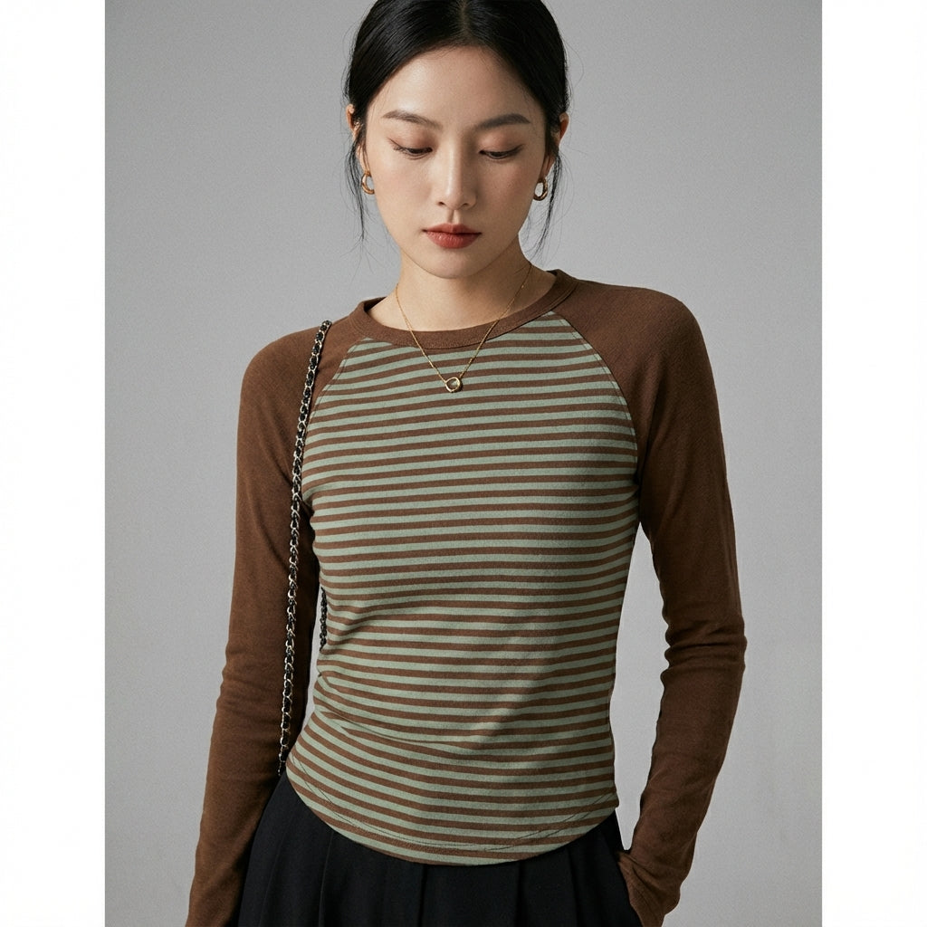 Ce t-shirt rayé est le choix parfait pour celles qui recherchent une pièce à la fois chic, confortable et imprégnée du style coréen, facile à intégrer dans diverses tenues.