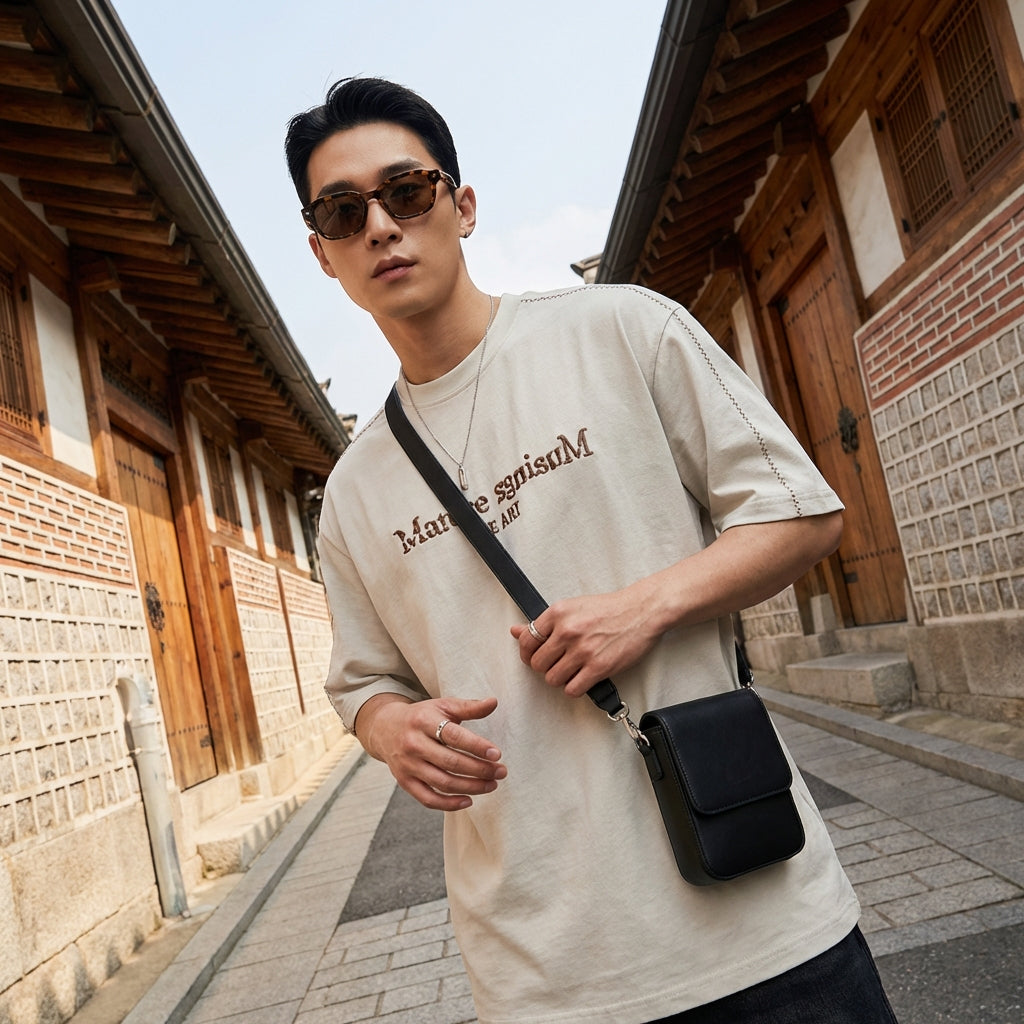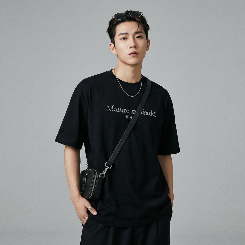 - Style : Streetwear, K-fashion, Décontracté. Ce t-shirt incarne l'esthétique décontractée et audacieuse de la mode urbaine coréenne, parfait pour un look moderne et branché.