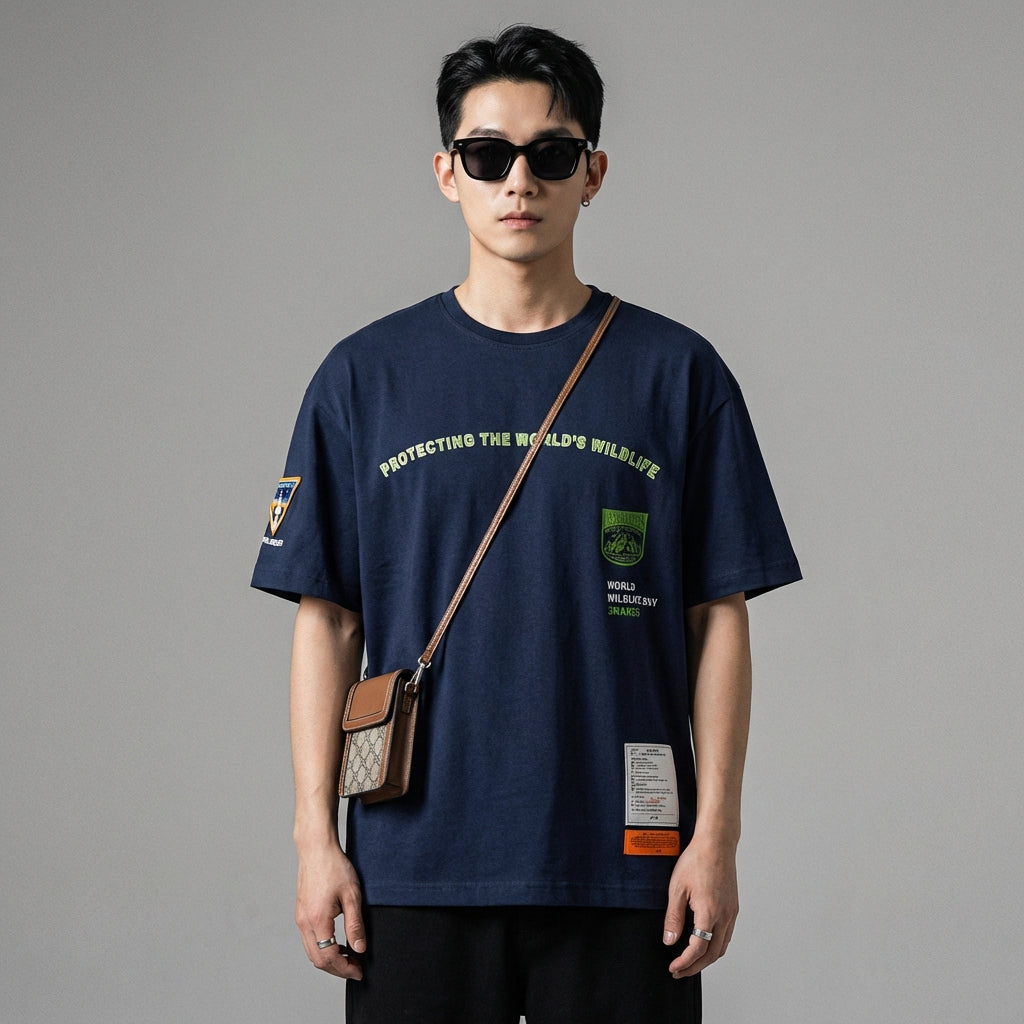 - Style : Streetwear, Décontracté, Mode coréenne. Ce t-shirt incarne l'esthétique décontractée et cool de la mode urbaine, avec une touche d'inspiration K-fashion.
