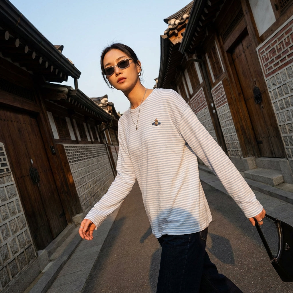 - Style : K-fashion, Décontracté, Frais. Ce t-shirt incarne l'esthétique décontractée et tendance de la mode coréenne, parfait pour un look quotidien ou une sortie entre amis.