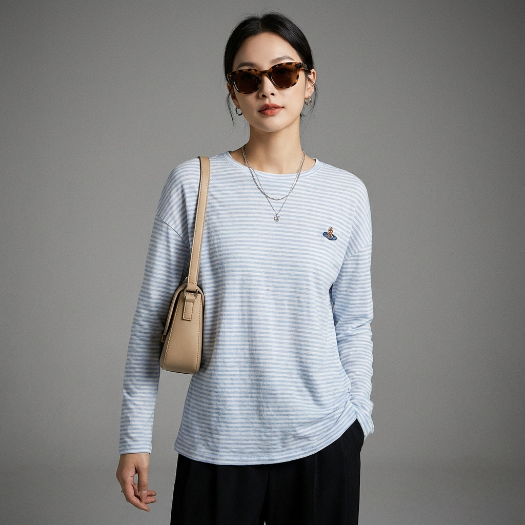 Adoptez un look décontracté et chic avec notre t-shirt à rayures bleues, parfait pour les journées ensoleillées. Sa coupe ample et son tissu léger vous offrent un confort optimal tout en vous protégeant du soleil avec style ! ☀️