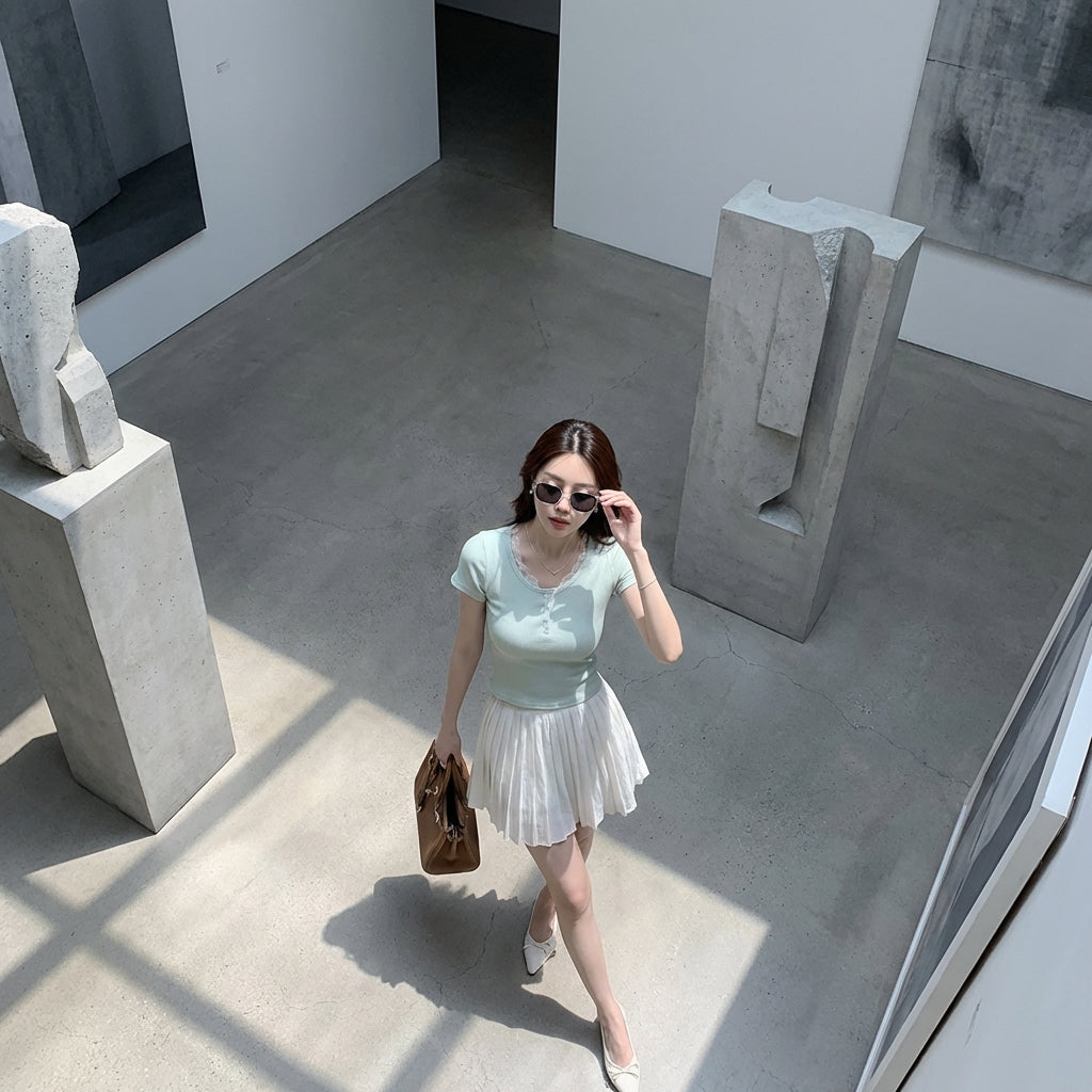- Style : Mode coréenne, Tendance, Chic. Ce top incarne l'élégance décontractée de la K-fashion, idéal pour un look sophistiqué et moderne.