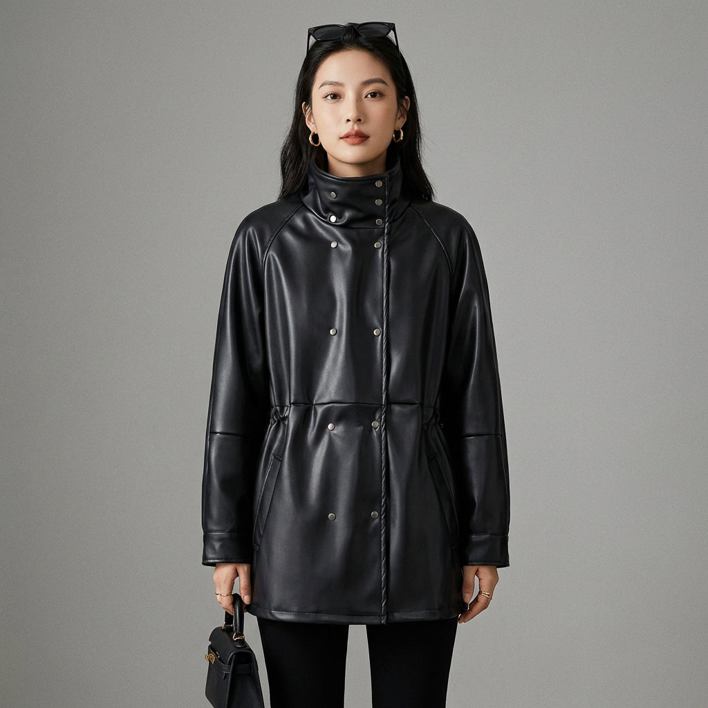 Cette veste noire à col montant est un investissement intemporel, ajoutant une touche d'élégance et de raffinement à votre garde-robe. Adoptez la tendance coréenne avec style et assurance.