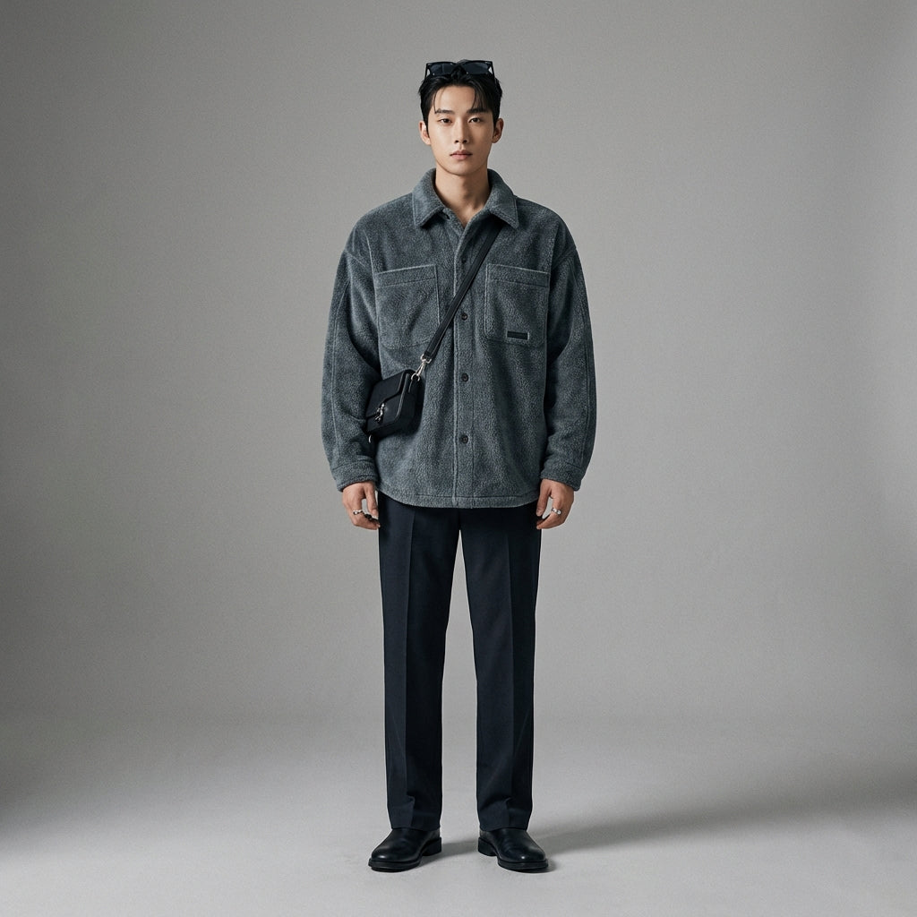 Veste ample gris foncé à revers pour homme - Koreanxwear