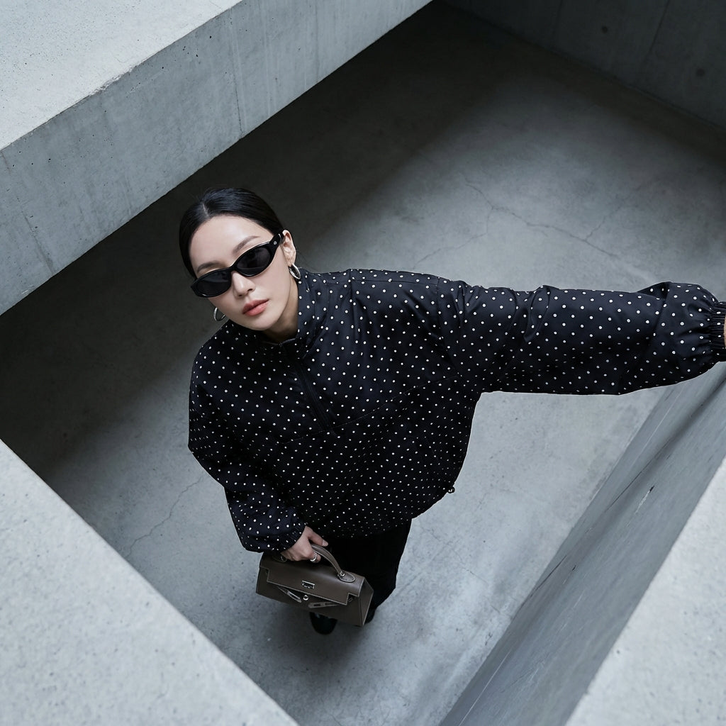 Adoptez un look décontracté et tendance avec notre veste loose à demi-zip et imprimé à pois. Son col montant et sa coupe oversize en font une pièce confortable et stylée, parfaite pour toutes vos escapades urbaines ! 🌟