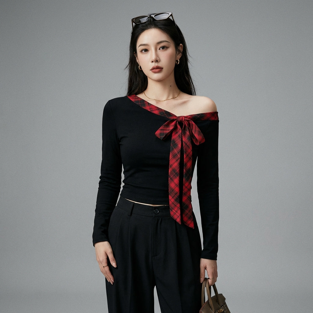 Choose this asymmetrical top for an irresistible look and contemporary elegance, inspired by the latest K-fashion trends.
