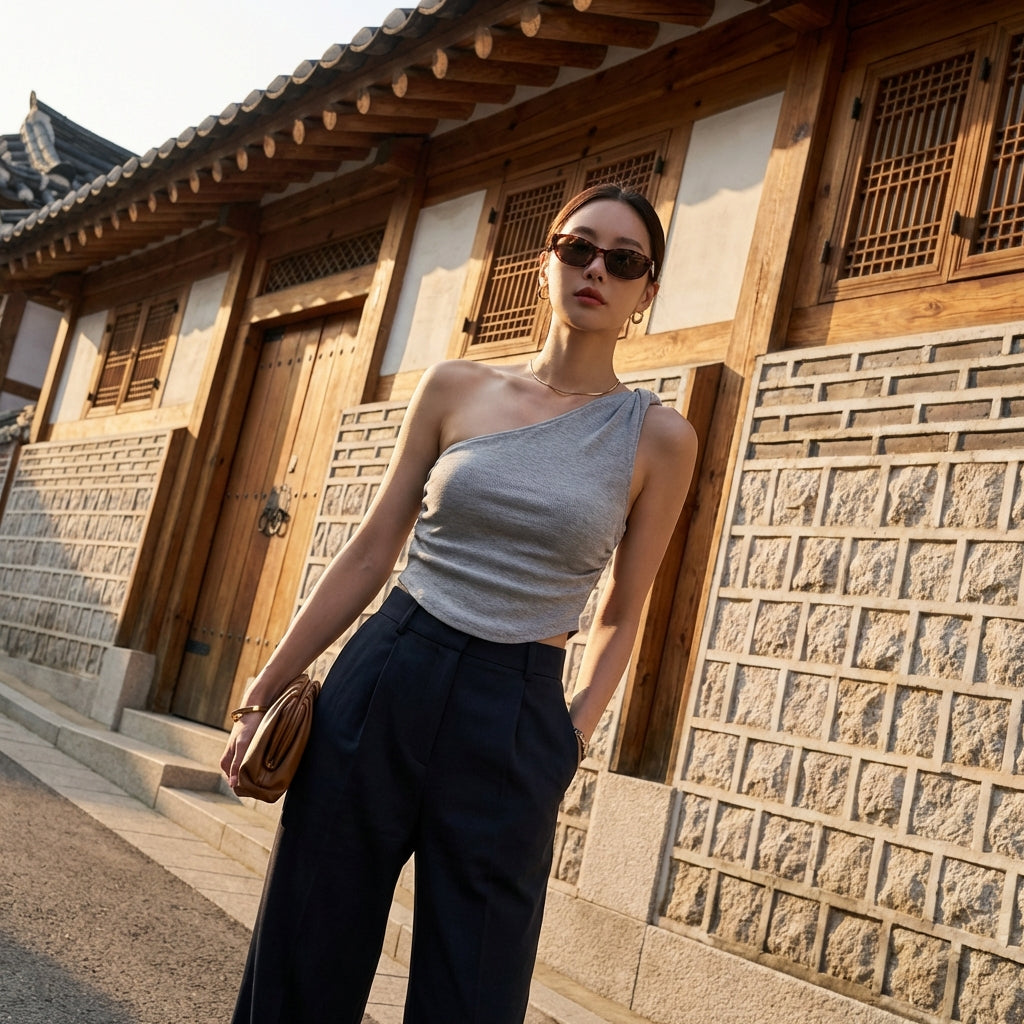 • Style: K-fashion, Modern, Casual. This tank top embodies the trendy spirit of Korean fashion, ideal for a chic and effortless look.
