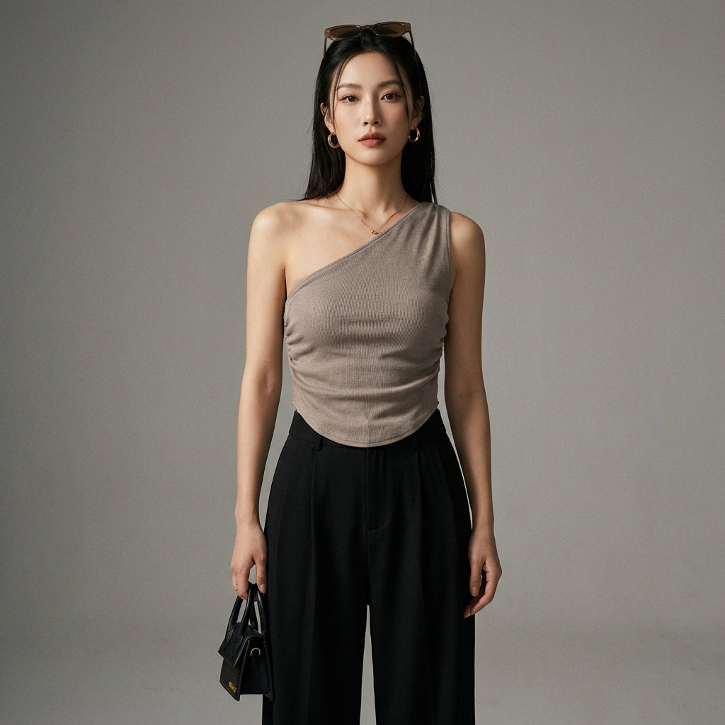 Assert your style with our knitted asymmetrical tank top, a bold and casual piece. Its twisted design and unique collar elegantly highlight the silhouette. Perfect for a touch of modernity in your wardrobe! ✨