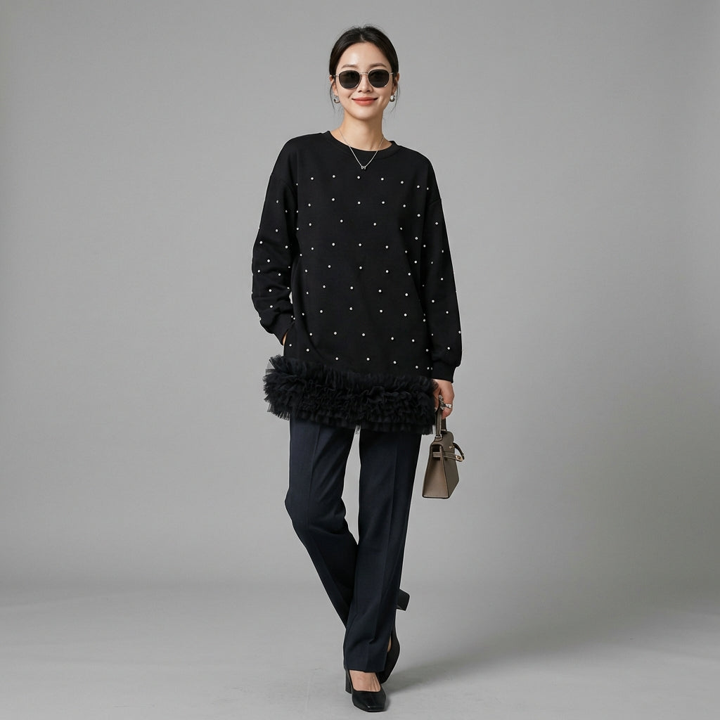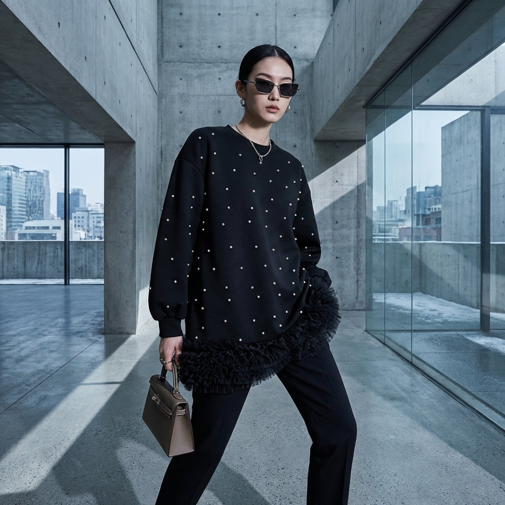 - Style: Streetwear, Trendy, K-fashion. This sweatshirt embodies Korean fashion with a casual and stylish touch, ideal for an urban and modern look.