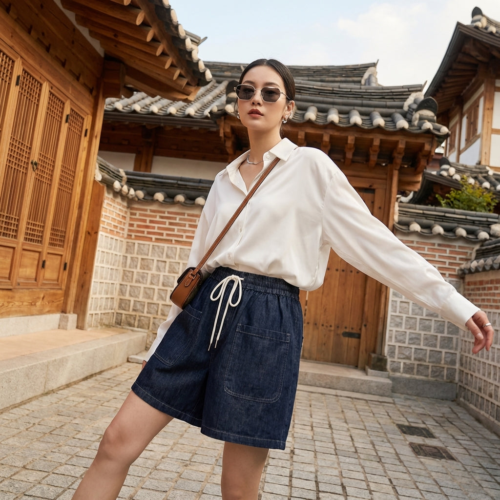 - Style: Streetwear, Vintage, Casual. These shorts embody the spirit of Korean fashion with a vintage touch, ideal for an urban and relaxed look.