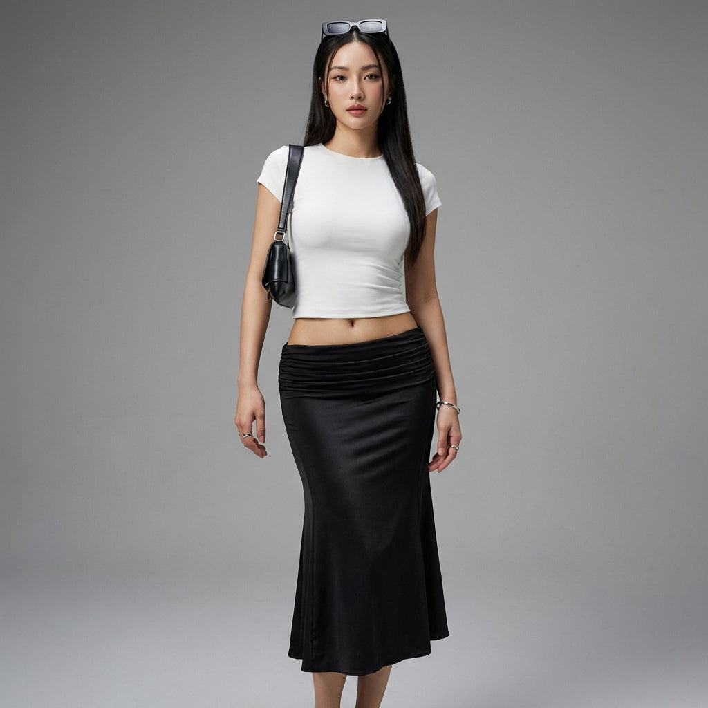 - Style: Korean Fashion, Elegant, Minimalist. This skirt embodies the modern sophistication of K-fashion, perfect for a chic and refined style.