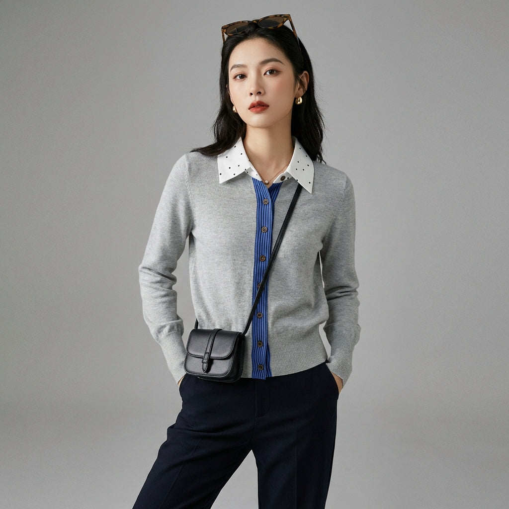 • Type: Cardigan, Lapel collar, Long sleeves. A classic and timeless cut for optimal comfort.