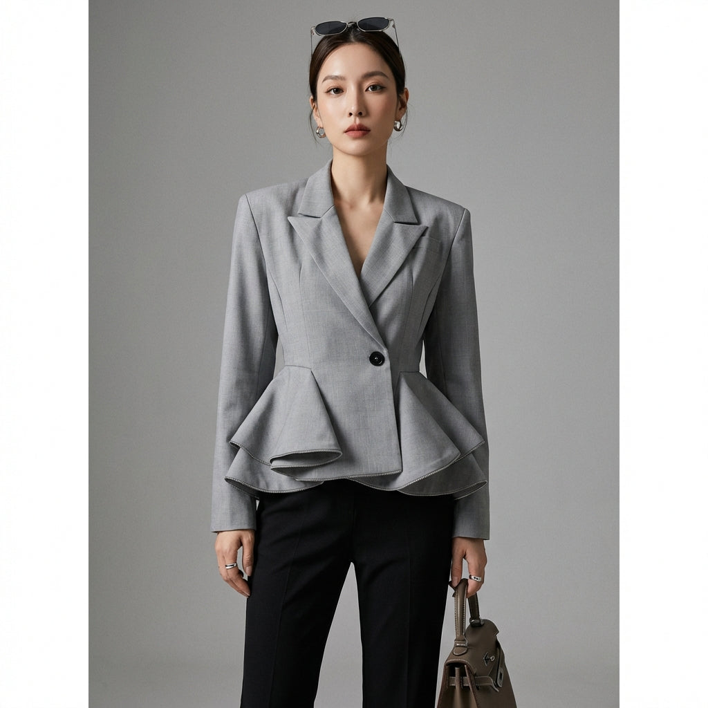 Assert your style with our elegant blazer, a masterpiece that combines sophistication with a modern touch. Its meticulous design with ruffle details brings a chic and contemporary allure, perfect for all occasions! ✨