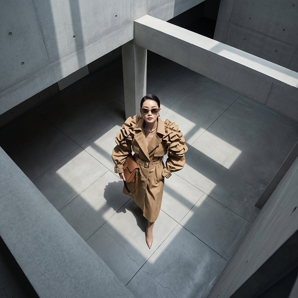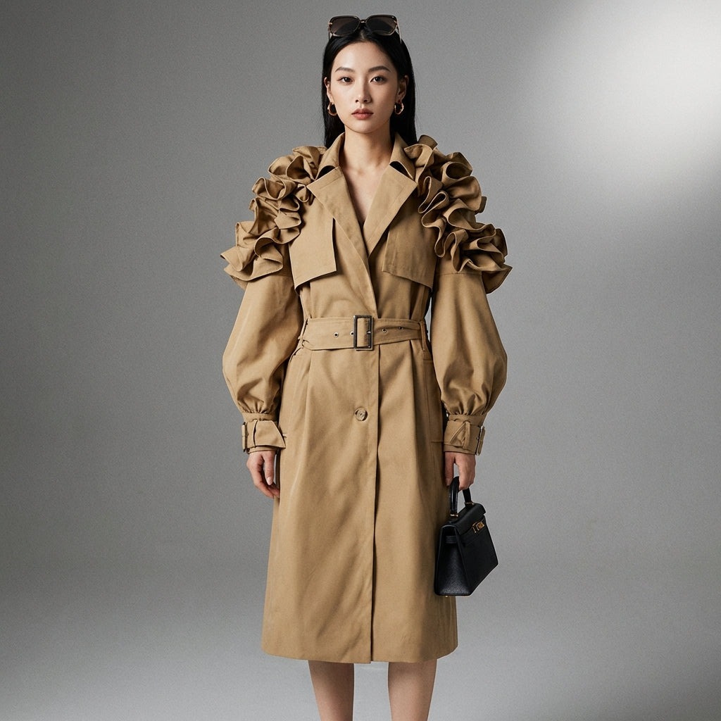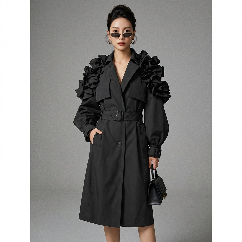 Elegant Ruffled Trench Coat