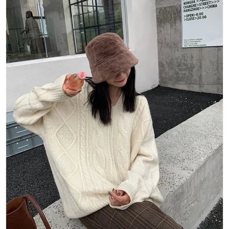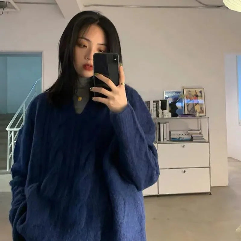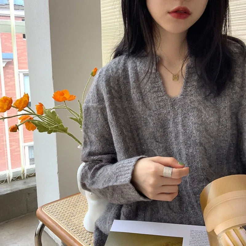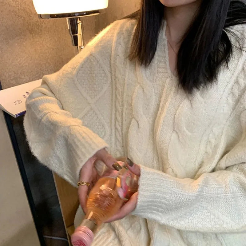 Style: Korean. Inspired by Korean fashion trends, this sweater reflects a contemporary approach to vintage elegance.