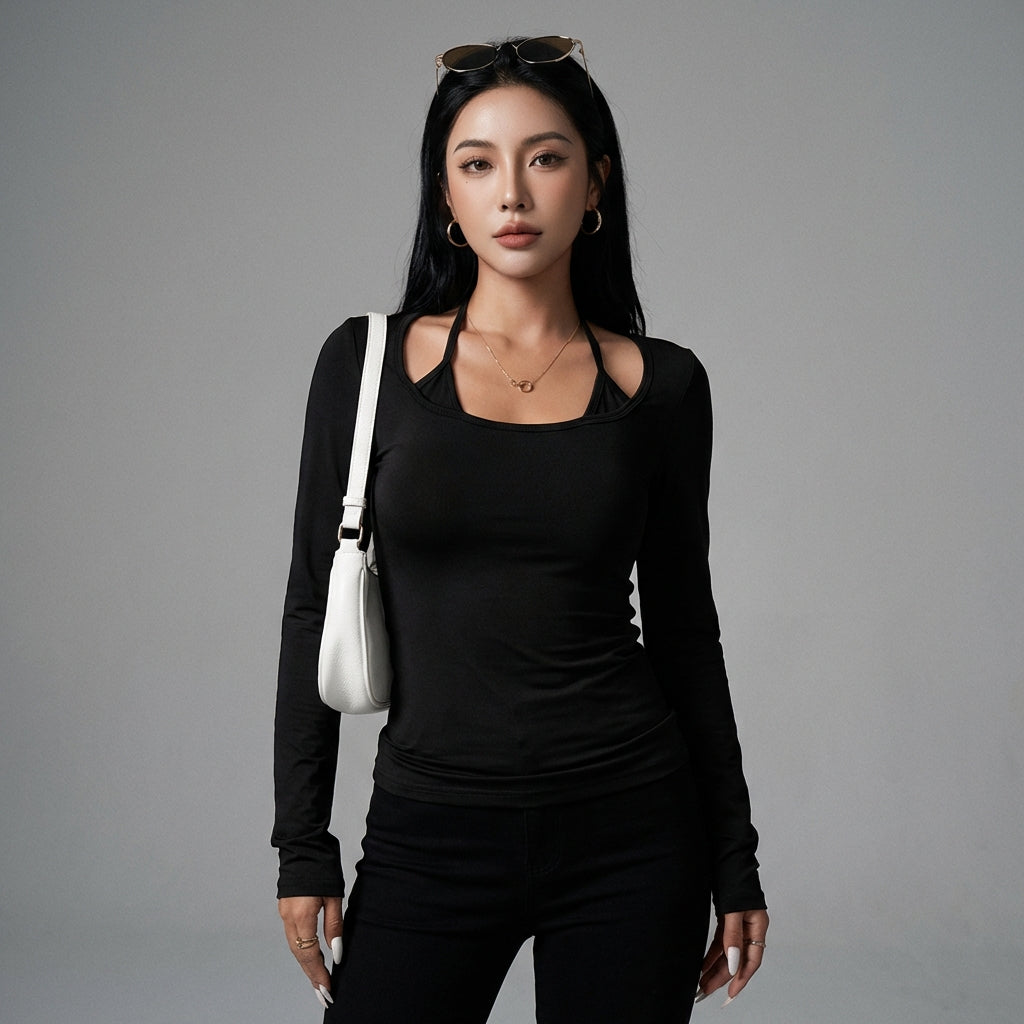 Embrace a trendy and sophisticated look with our layered long-sleeved T-shirt. Designed for a streamlined silhouette, this top combines comfort and style for all your occasions! ✨