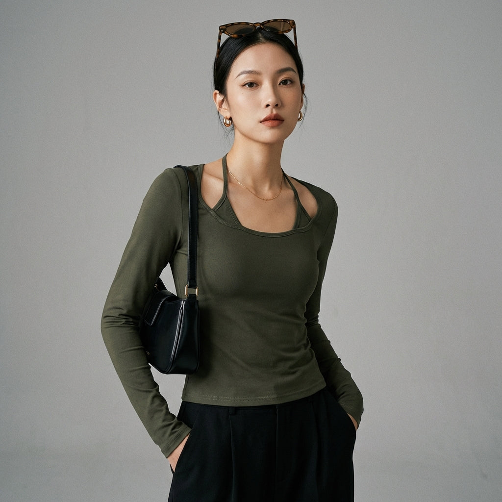 - Type: Slim fit, Faux layered. A fitted cut that enhances the silhouette, with a clever design for a double-layer effect without bulk.