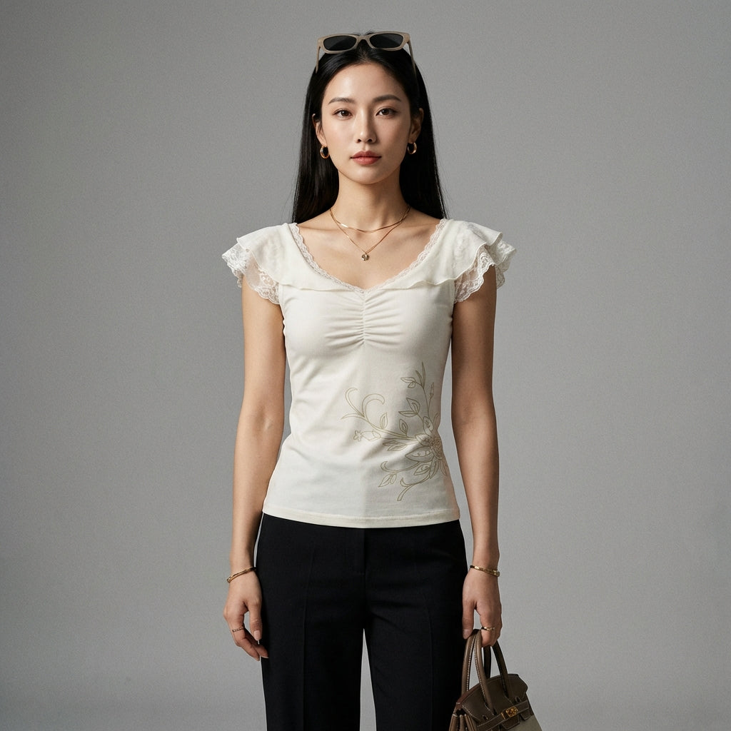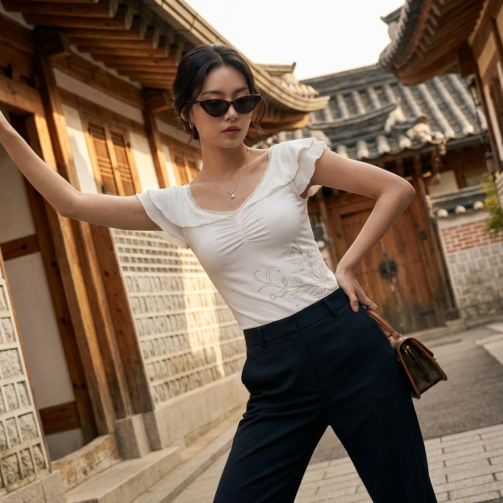 - Style: K-fashion, Trendy, Feminine. This top embodies casual elegance and the floral patterns popular in current Korean fashion.