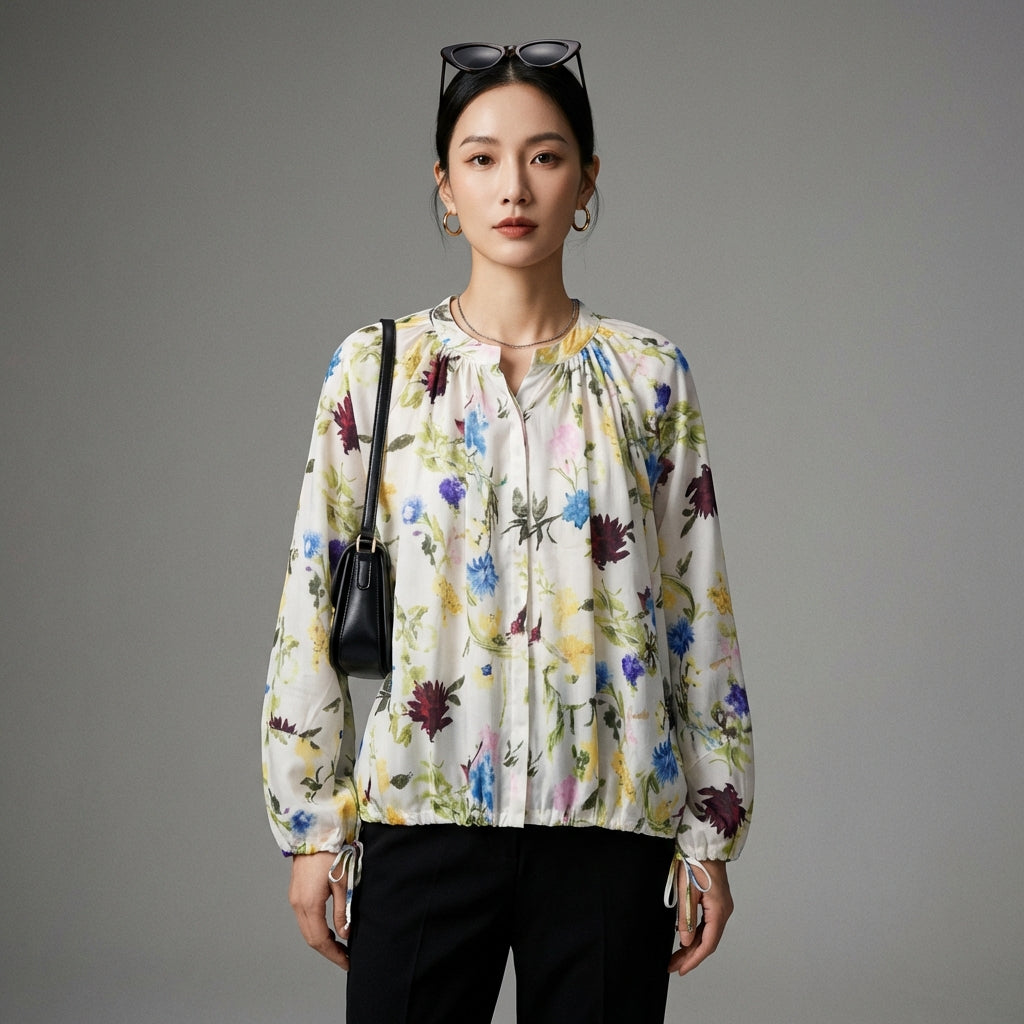 This floral blouse is a must-have for those looking for a versatile piece, capable of adapting to various occasions while maintaining a touch of originality and femininity.