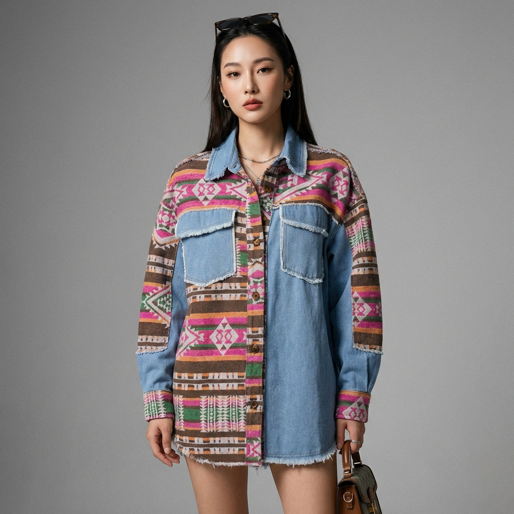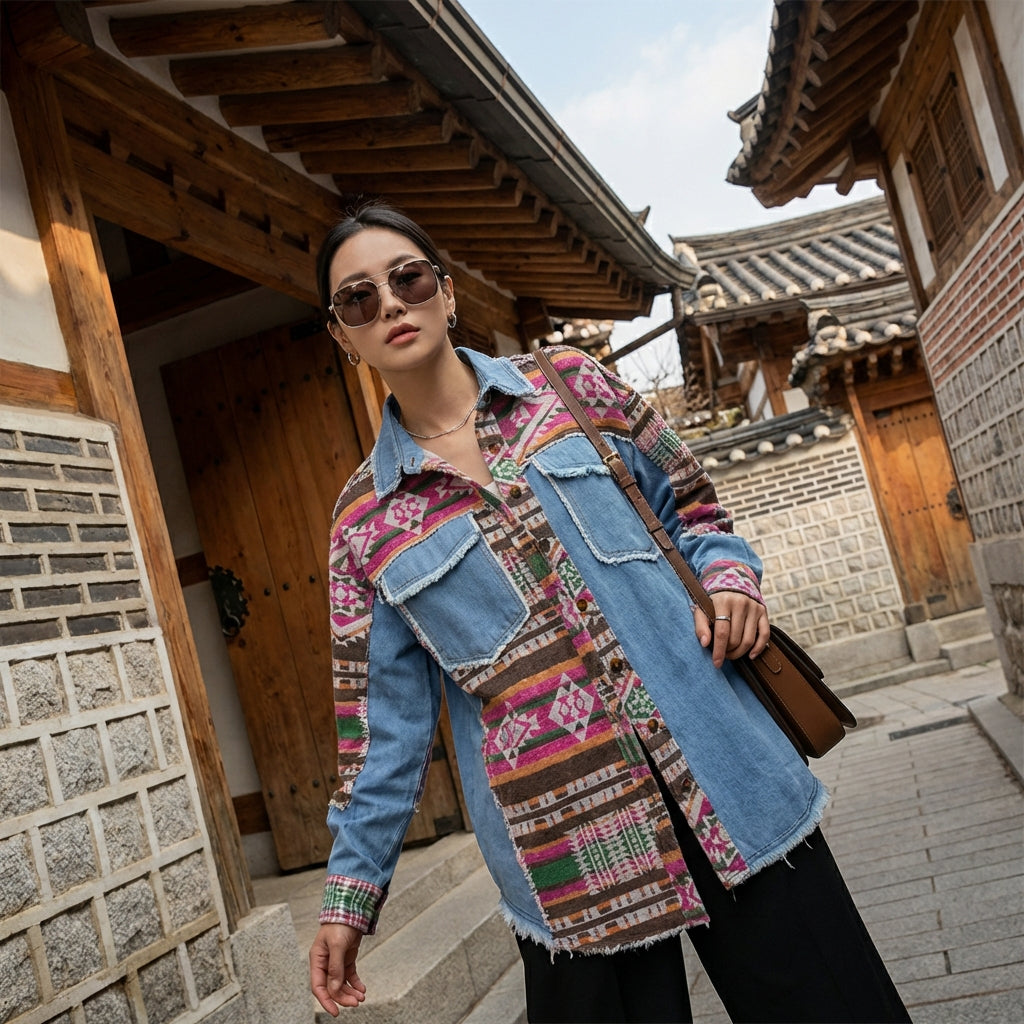 Opt for this frayed denim jacket and add a centerpiece to your wardrobe that combines comfort, style, and a touch of boldness inspired by the latest Korean trends.