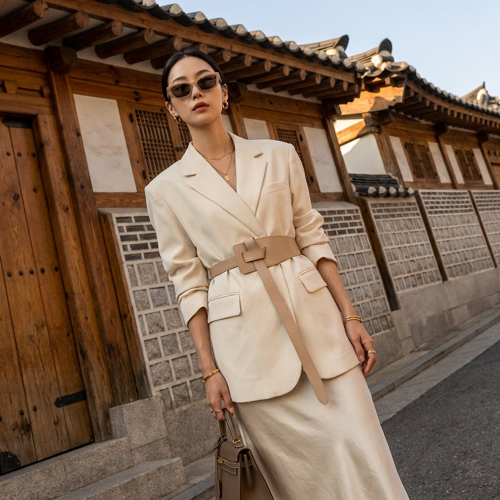 Ceinture large en cuir véritable marron, design irrégulier, style K-fashion