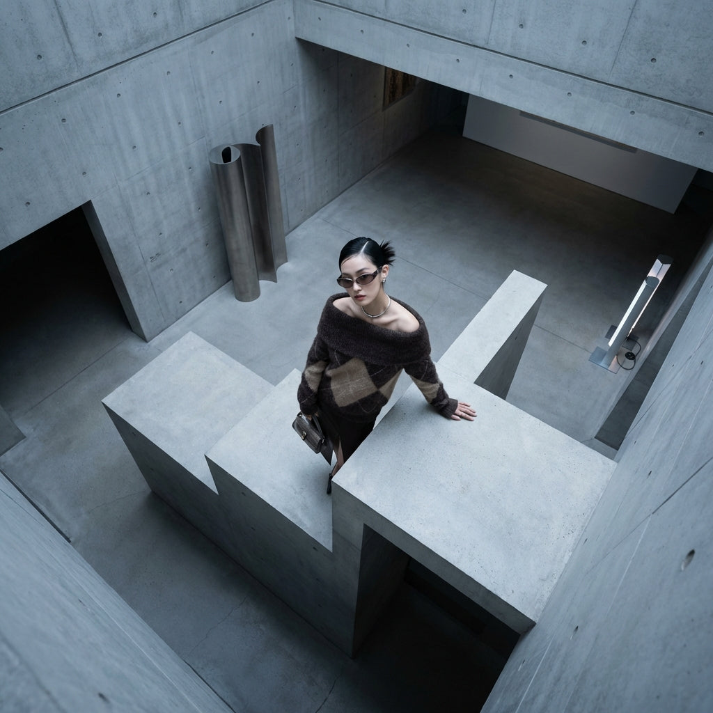 Embrace a chic and casual look with our knitted long-sleeved boat neck sweater. Its timeless checkered pattern adds a touch of understated elegance, perfect for any occasion! ✨