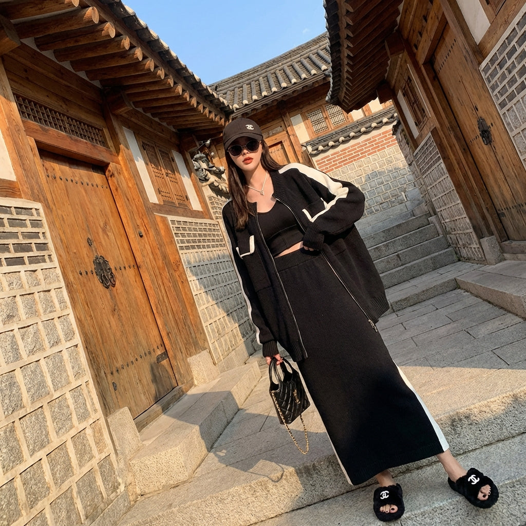 - Style: Korean Fashion, Streetwear, Minimalist. This set embodies casual elegance and current K-fashion trends, perfect for an urban and modern look.