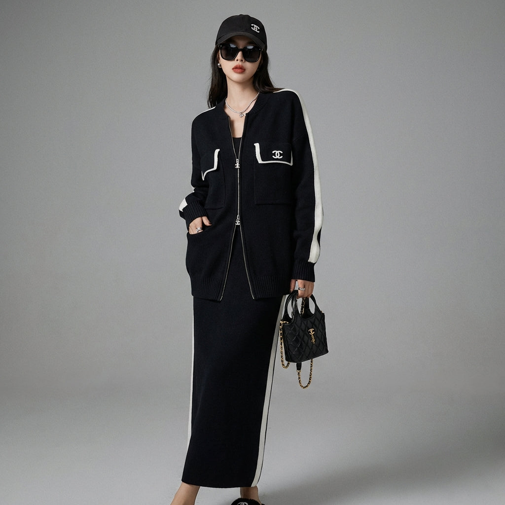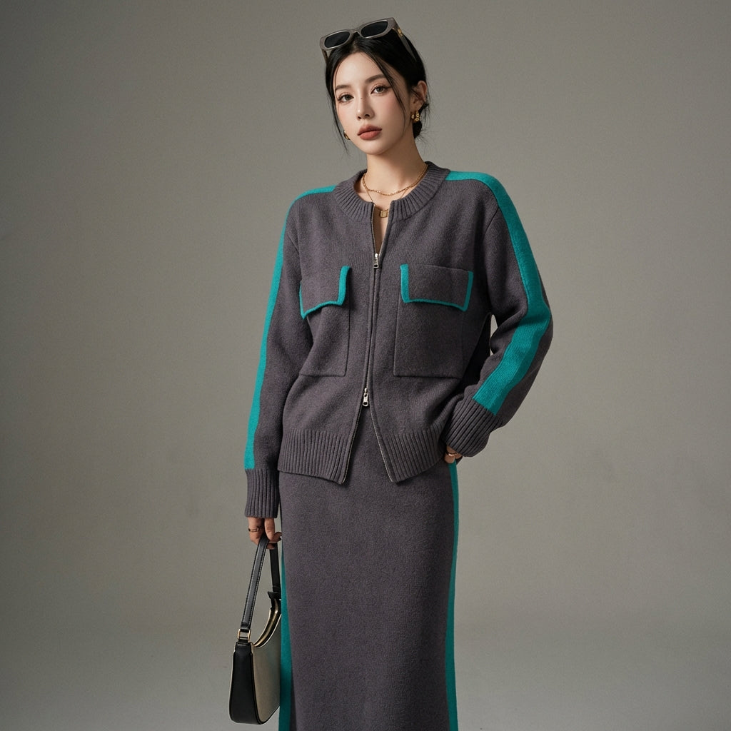 - Type: Set, Cardigan, Skirt. A versatile set, easy to wear together or separately for various occasions.