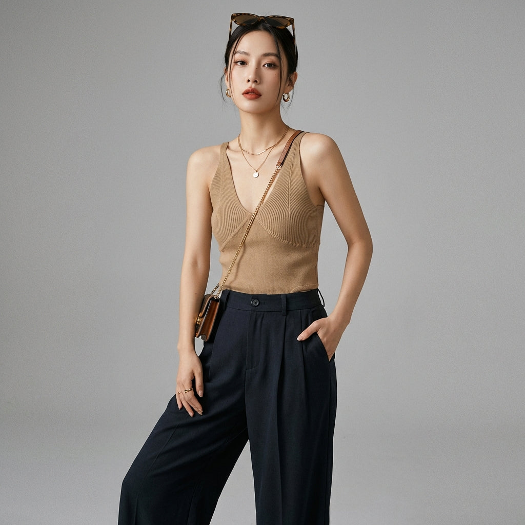 - Style: Streetwear, Minimalist, K-fashion. This tank top embodies the simple and modern elegance of Korean fashion, perfect for an urban and trendy look.