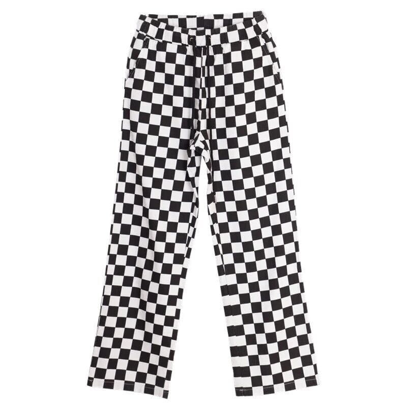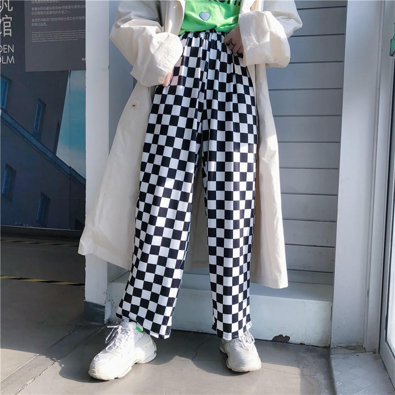 It's high time for you to wear these long, straight pants with a black and white checkerboard pattern. Dress in Korean Vintage style.