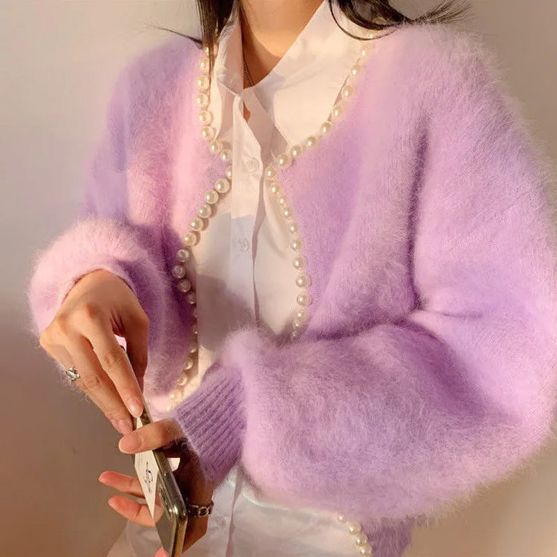 Embrace charm and elegance with our faux mink fur cardigan, enhanced with beaded edges. This niche model is perfect for cool seasons, offering comfort and sophisticated style. 🌟