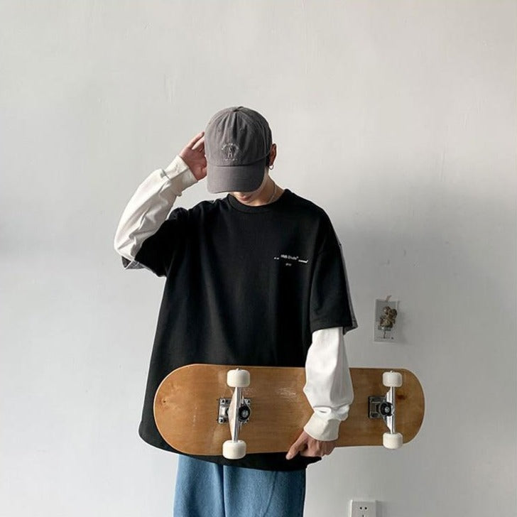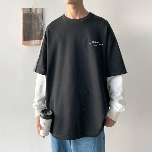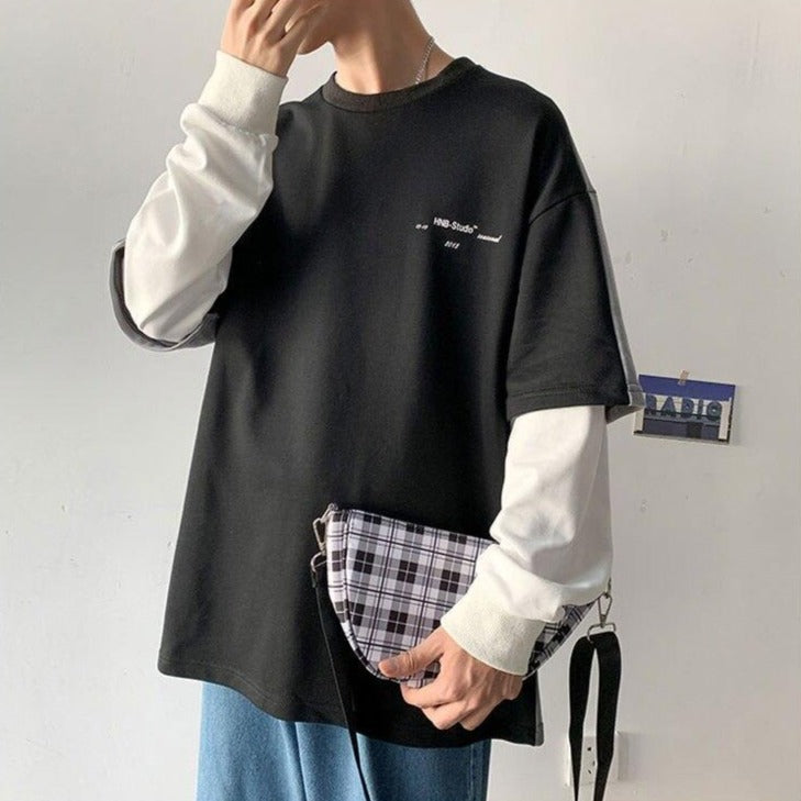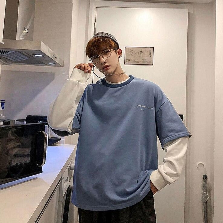 This loose-fitting sweater with a vintage design features a double sleeve, also known as a fake sleeve. This offers a style highly appreciated in South Korea and especially in the K-pop world. This sweatshirt is superb for boys who are K-pop fans, even though it is unisex.