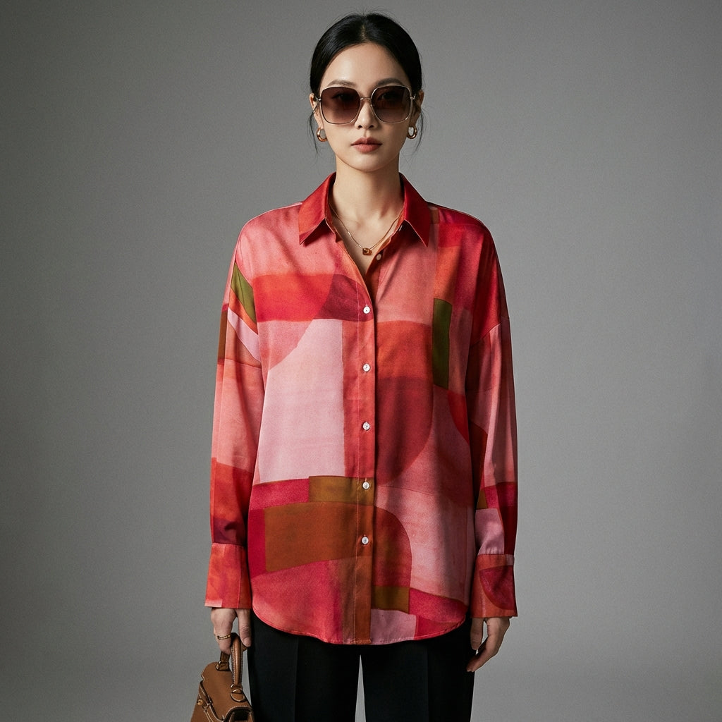 Embrace a trendy and modern look with our long-sleeved shirt featuring a bold geometric pattern. Its classic spread collar and elegant cut make it a centerpiece for all occasions, adding a touch of sophistication to your wardrobe! ✨