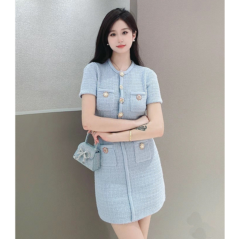 Discover the elegant Blue Haze knitted dress, perfect for a modern and refined look. Made from fibers, it offers both comfort and style, suitable for all occasions, from everyday wear to more formal events. A must-have for fans of Korean fashion. ☀️