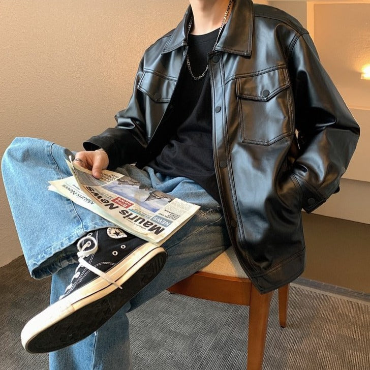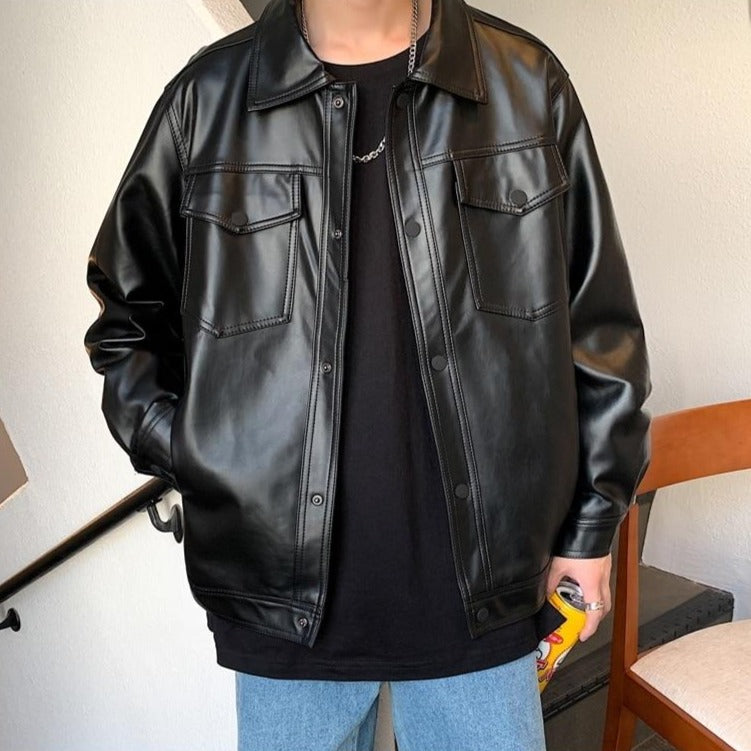 This leather jacket is perfect for South Korean fans who want a bold style. It is comfortable and made from non-animal origin leather. It's a perfect jacket when the coolness starts to arrive.