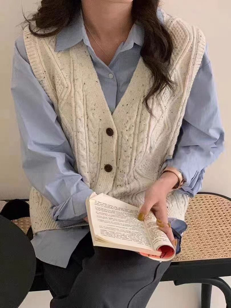 Choose this knitted vest to add a touch of Korean fashion to your wardrobe, combining comfort and style for any occasion.