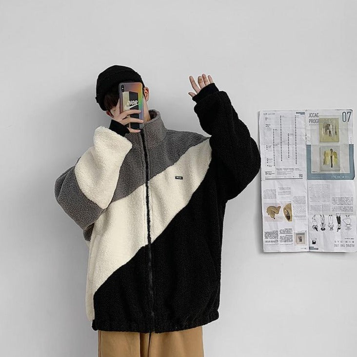 This synthetic wool jacket is superb when it's cold. Its diagonal style makes the wearer easily noticeable. It's a type of jacket highly appreciated in Korea during winter.