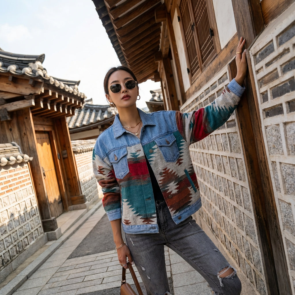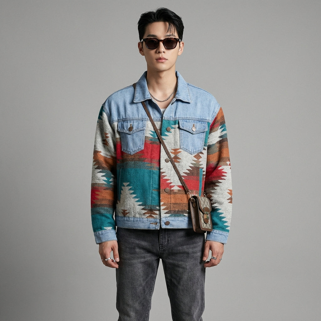 Embrace a modern and casual look with our geometric print shirt jacket. Ideal for layering, it adds a touch of originality to your outfit. Perfect for a bold K-fashion style! 💙