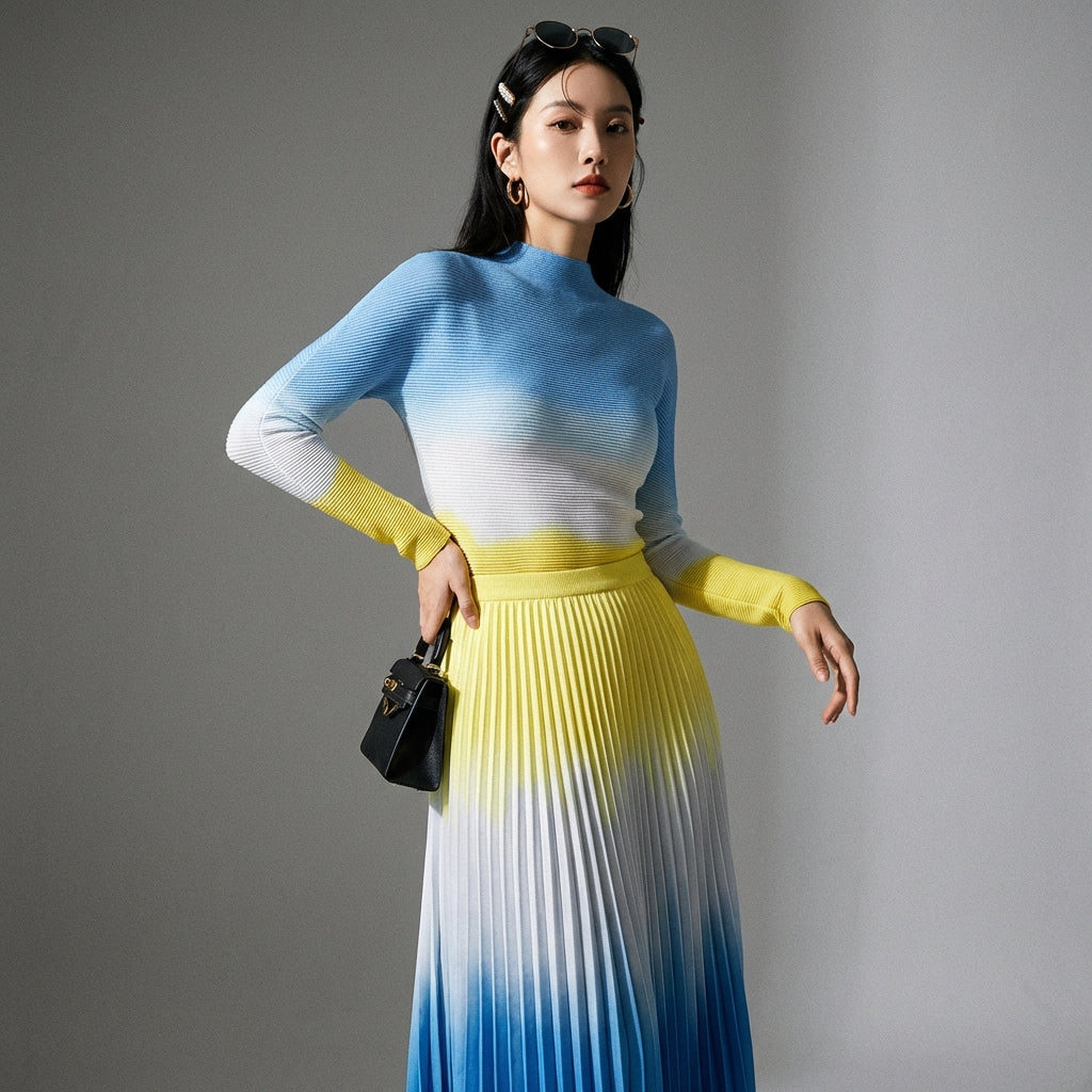 • Type: Two-piece set, Long skirt, Pleated top. A flattering cut and original design for a refined silhouette.