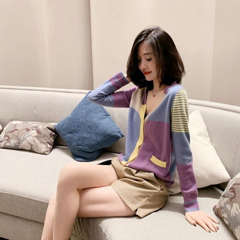Are you looking for a top for your new woman's style? Here is a Korean cardigan that should please you. This classic top is colorful and has various patterns. It's the type of top that Korean women really like for going to class or work.