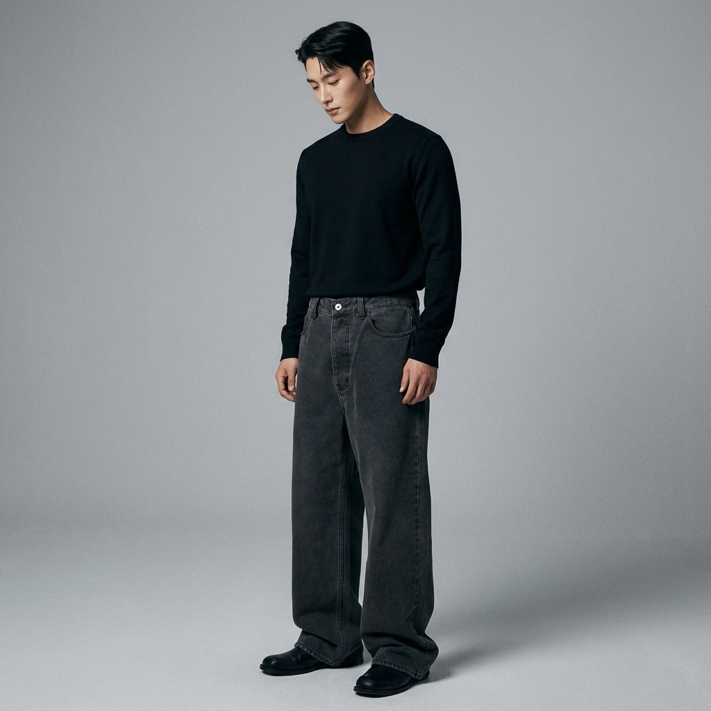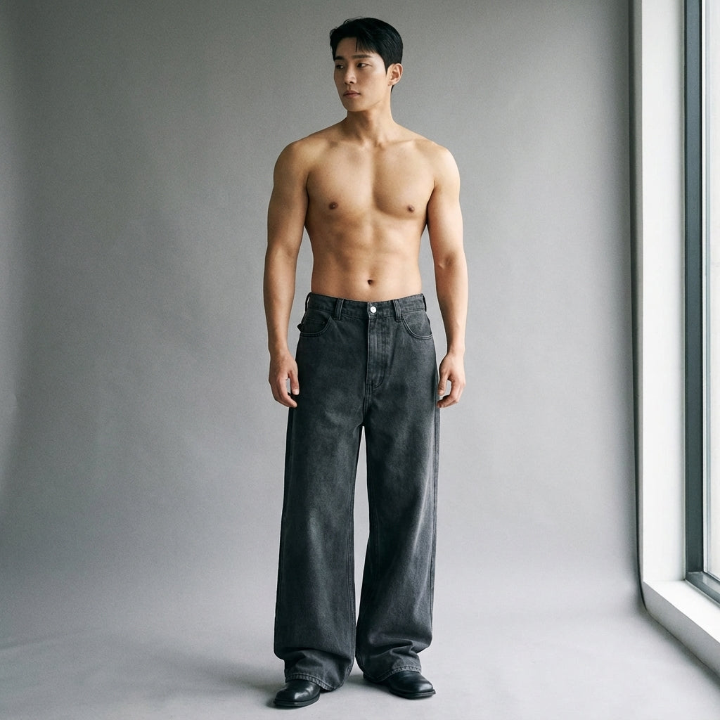 These jeans are the perfect ally for a stylish and comfortable wardrobe, reflecting the spirit of contemporary Korean fashion.