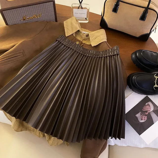Made primarily from PU with 80% of this material, this skirt combines style and durability. The A-line cut and pleats add a touch of sophistication, perfect for all occasions. Add this elegant and versatile piece to your wardrobe!