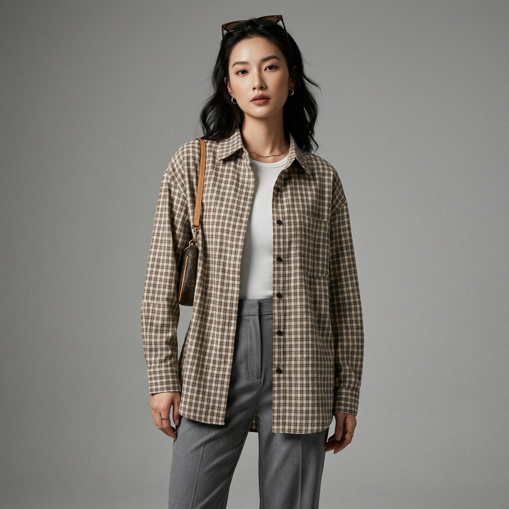 This plaid shirt is a versatile piece that will instantly elevate your style, offering comfort and a trendy look for all occasions.