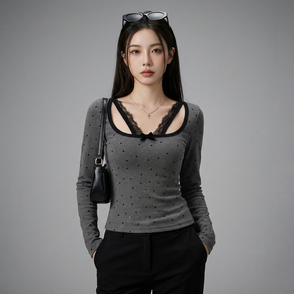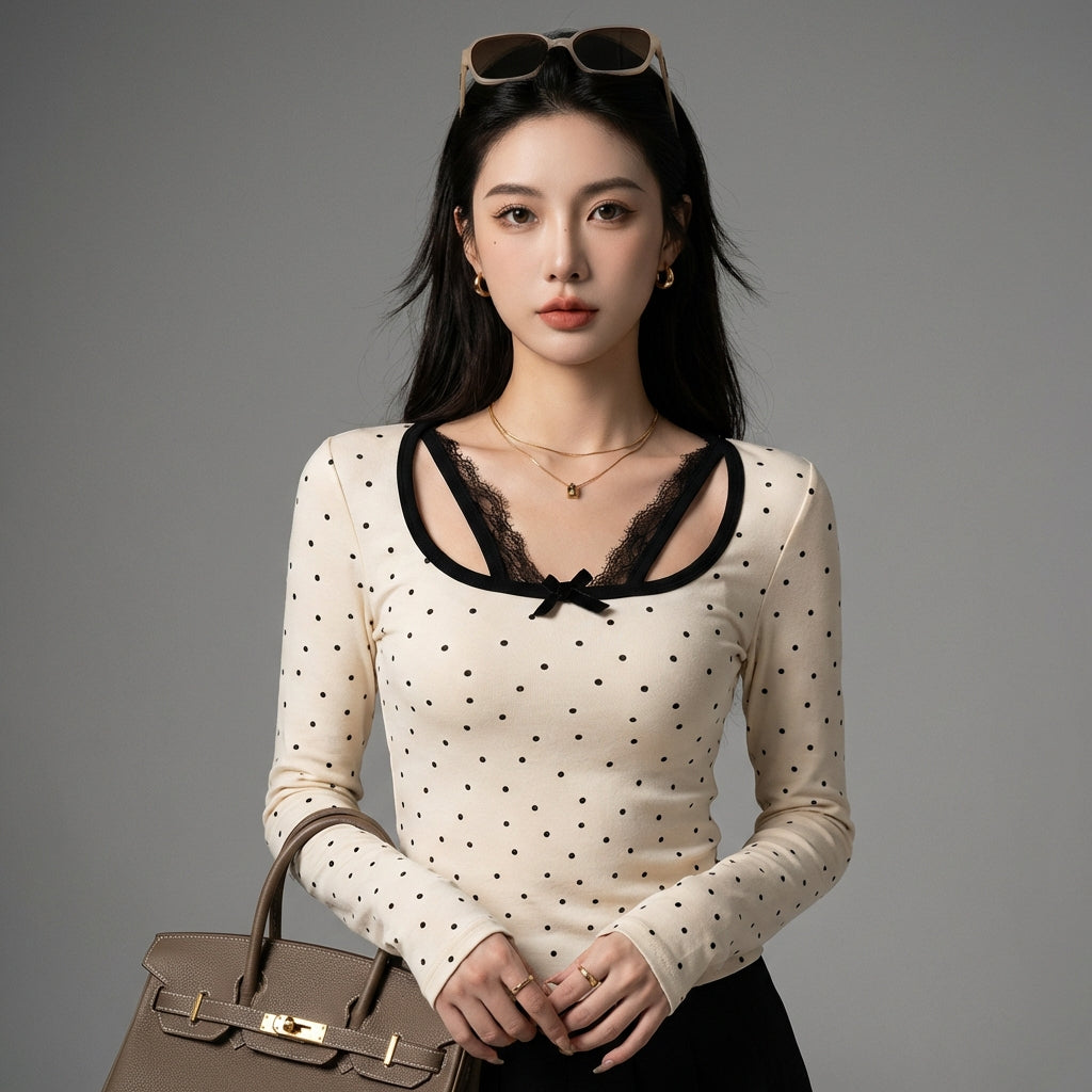 Discover our lace polka dot top, an elegant and refined piece that brings a touch of sophistication to your wardrobe. With its delicate design and fitted cut, it's perfect for all occasions, from casual outings to special evenings! ✨